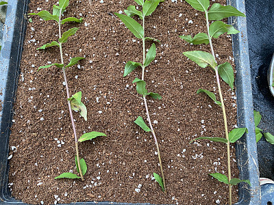 올해가지 7~10cm 삽목이 잘되는 종류로 오리해가지 7~10cm 줄기 3-4마디를 잘라 삽목하면 한달안에 굵은뿌리가 발근하며 물만 말리지 않는다면 발근율은 100%에 가깝다.