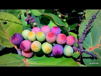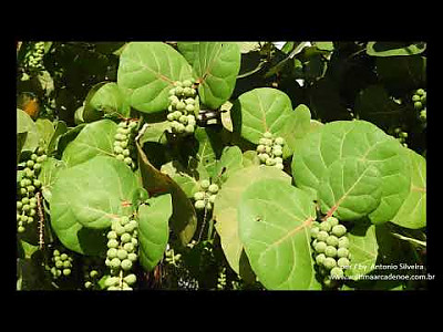 바다포도는 최대 8M까지 자라는 상록수이이지만 보통 2M정도 크기이다. 새순은 황금빛에 가까운 브론즈(동)색이며, 빛을 잘 받은 잎사귀의 잎맥은 붉은색으로 물든다. 잎은 오래되면 노란색에서 빨간색으로 변한다. 나무껍질은 회색빛을 띄고 매끄럽다.
