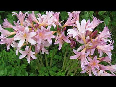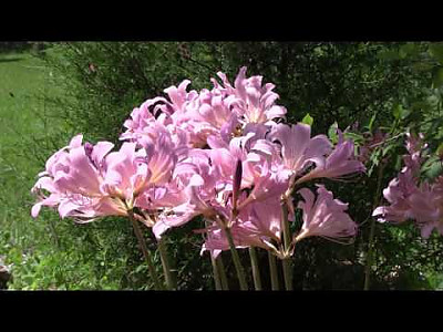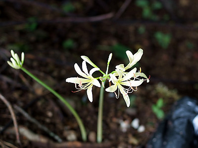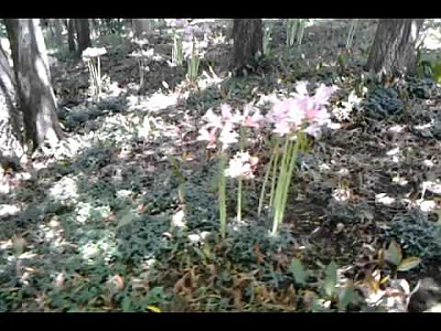 꽃 | 8월에 화경(花莖)이 나와 길이 60㎝정도 자라며 끝에 4-8개의 꽃이 달린 산형화서가 발달한다. 총포는 길이 2-4㎝로서 넓은 피침형이고 소화경은 길이 1-2㎝이며 꽃은 길이 9-10cm이고 통부는 길이 2.5cm로서 연한 홍자색이다. 화피열편은 6개이며 폭 15mm로서 비스듬히 퍼지고 수술은 6개이며 꽃밖으로 나오지 않는다. 자방은 하위이고 3실이며 열매를 맺지 못한다. |