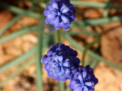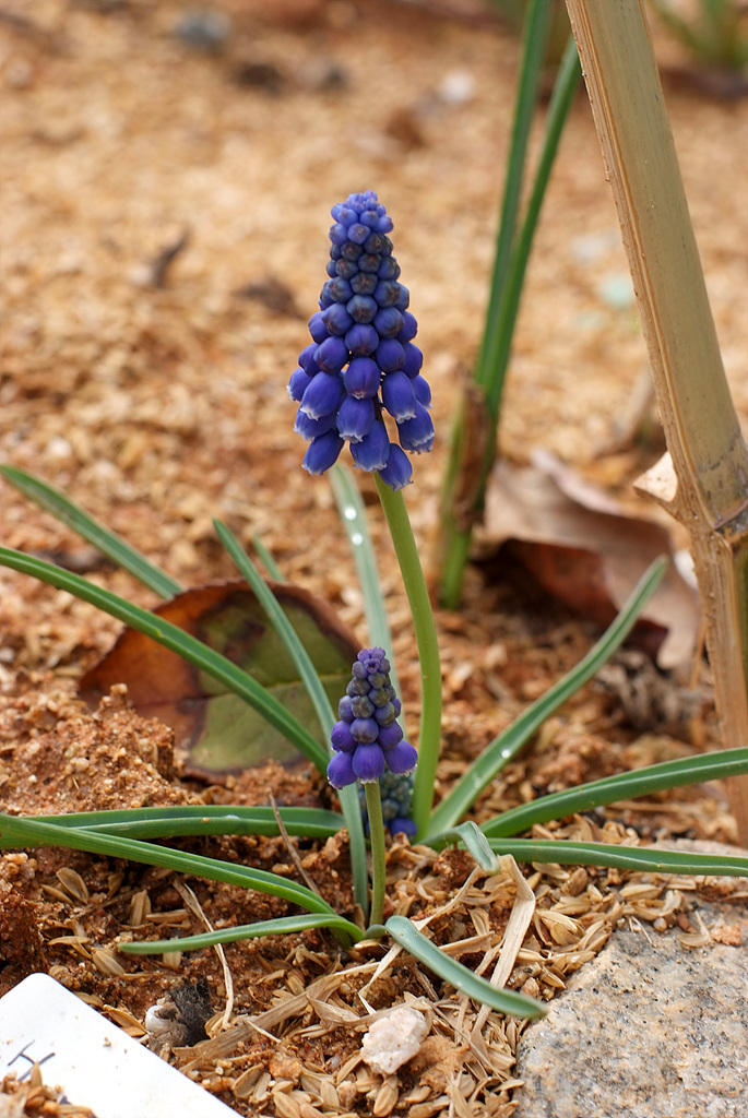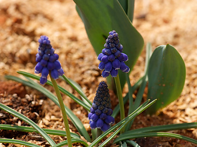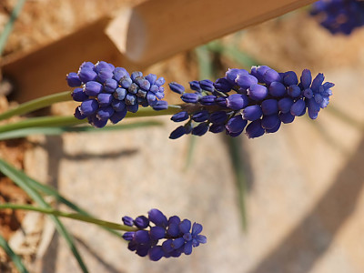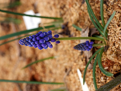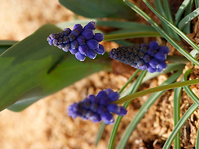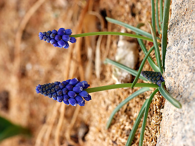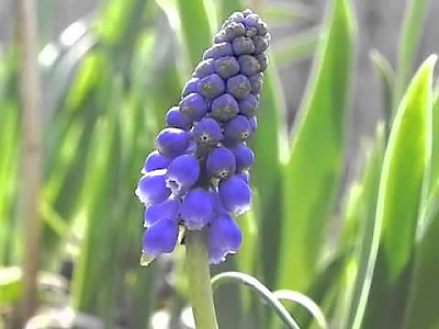 무스카리(Muscari: Muscari botryoides)는 지중해지방 원산으로 꽃의 향기가 아주 좋은 백합과의 알뿌리화초이다. 학명의 무스카리는 향기가 뛰어나기 때문에 '사향(麝香)'을 뜻하는 그리스어인 'Moschos'라는 단어로부터 유래하였다. 무릇 모양의 좁은 잎은 윤기가 나며 자라면서 활처럼 휘는 성질이 있다. 꽃은 10cm 전후의 꽃줄기 끝에 종 모양의 작은 꽃들이 거꾸로 세워놓은 포도송이처럼 무리 지어 달린다. 꽃 색은 파랑 색과 하양 색이 일반적인이며 다른 알뿌리화초들에 비해 개화기간이 꽤나 오랫동안 지속되는 편이다. 무스카리는 전체적인 식물체의 크기가 작으므로 미니화분에 심어 테이블이나 창가 같은 장소에 올려놓으면 아기자기하게 생긴 진파랑색 꽃과 함께 달콤하면서도 시원한 향기를 한동안 즐길 수 있다. 봄에 꽃이 피는 알뿌리 화초들 중 꽃을 피우기가 가장 쉽고 재배하기도 아주 용이한 화초이다.