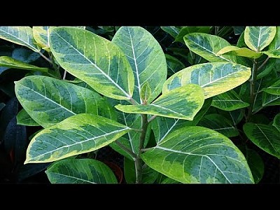 Ficus elastica cv. Variegata 무늬 인도 고무나무
