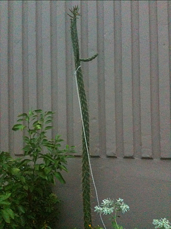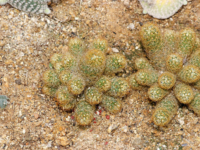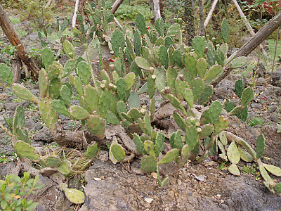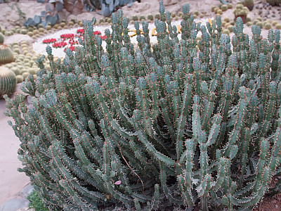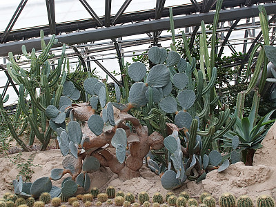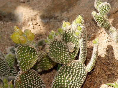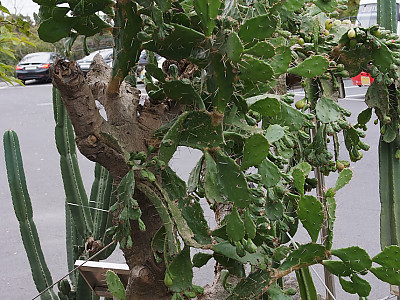 줄기는 여러 개의 가지로 갈라지고 줄기마디(莖節)는 짙은 녹색으로 장타원형 또는 긴 도란형으로 편평하며 육질이고, 큰 것은 30cm정도로 다수 연결되는데 표면에 1~3cm의 가시가 2-5개씩 돋아 있고 바로 옆에 털이 있으며 오래 된 줄기는 나무처럼 굵고 둥근 원줄기 위에서 편평한 가지가 사방으로 갈라진다. | |