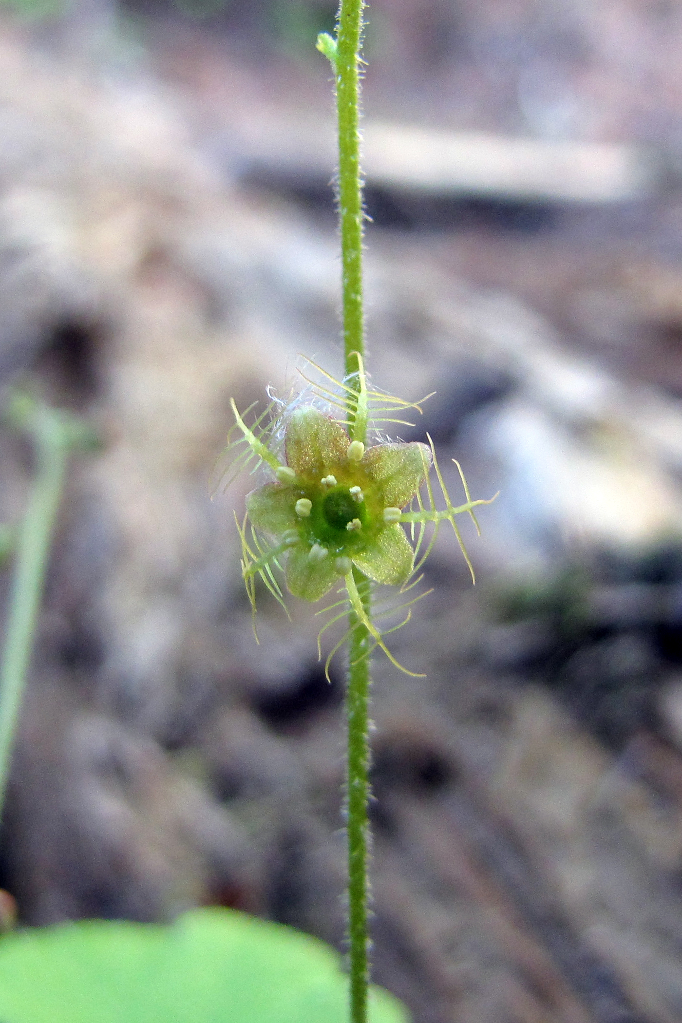화경(花莖)은 길이 15-25cm로서 짧은 선모가 있으며 흔히 1개의 소엽이 달린다. 꽃은 5월에 피며 총상화서에 몇 개의 꽃이 드문드문 달린다. 꽃받침은 통같고 끝이 5개로 갈라지며 열편은 삼각상 난형으로서 끝이 뾰족하고 퍼지며 다소 젖혀지고 꽃잎은 5개로서 꽃받침통 위 가장자리에 달리며 우상으로 갈라진다. 자방은 꽃받침과 합쳐진다. | |