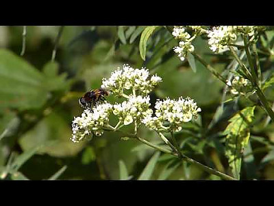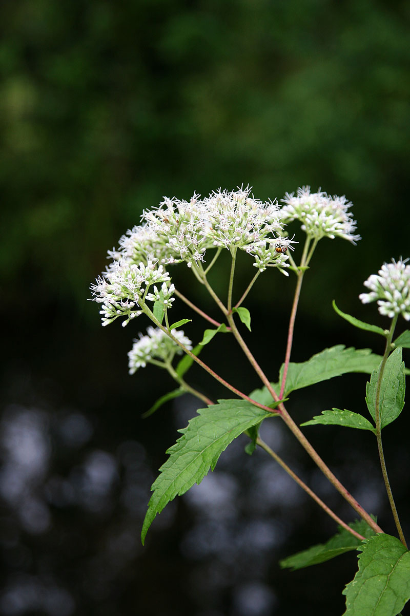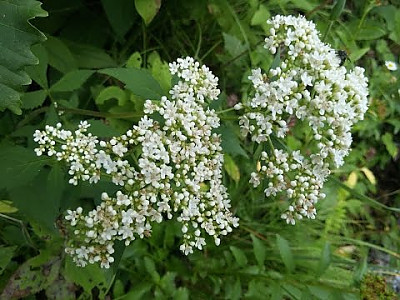 꽃은 7-8월에 피고 백색이며 가지 끝과 원줄기 끝에 산방상으로 달리고 화서분지에는 원줄기의 하반부와 더불어 퍼진 또는 밑을 향한 백색 털이 있다. 화관은 지름 4mm로서 끝이 5개로 갈라지며 통부가 짧다. 4개의 수술과 1개의 암술은 길게 꽃 밖으로 곧게 뻗고 자방은 하위이며 3실로서 그 중 1실만이 열매를 맺는다. | |