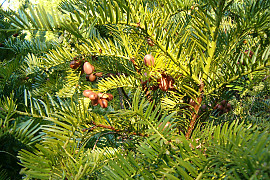 상록침엽교목(자웅이주), 수형:난형 | |