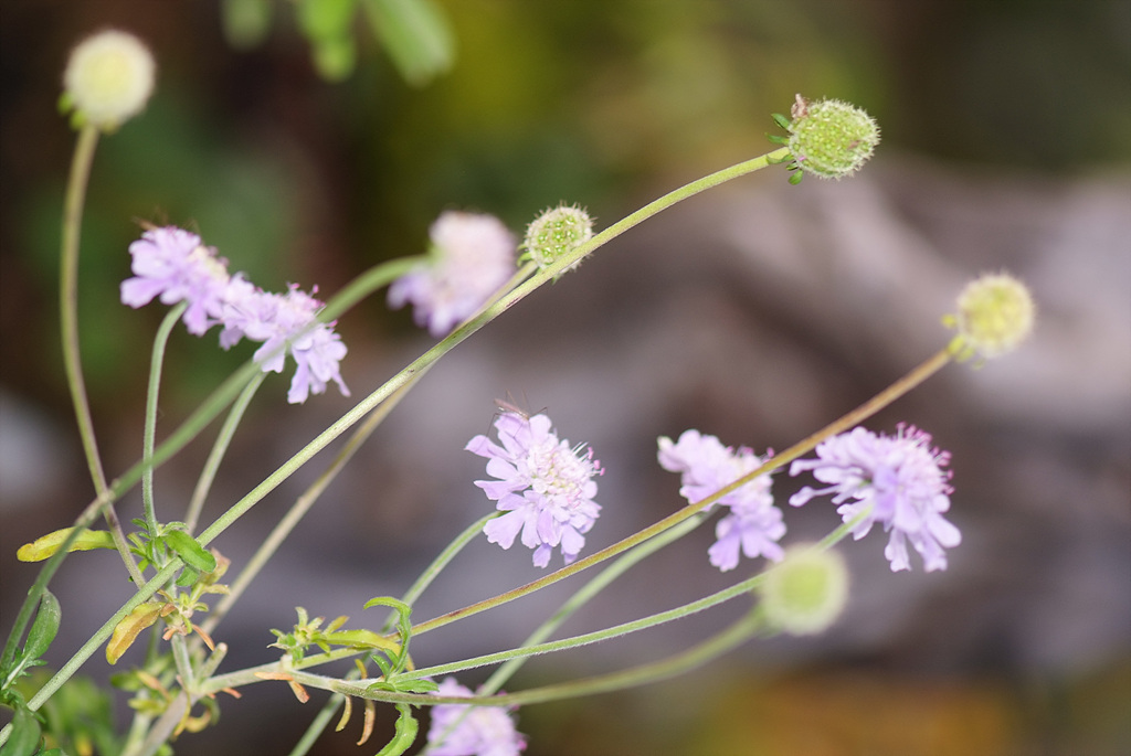 산지, 특히 석회암지대에서 자라는 두해살이풀이다. 줄기는 곧추서며, 마자나기로 가지가 갈라지며, 높이는 50~90cm, 퍼진 털과 꼬부라진 털이 있다. 뿌리잎은 잎자루가 길며 피침형이다. 줄기잎은 마주나며, 깃꼴로 깊이 갈라지고 가장자리에 결각 모양의 큰 톱니가 있다. 중앙부의 잎은 길이 9cm, 폭 3cm이고, 꽃싸개잎은 선형으로 3cm이다. 꽃은 7~9월에 하늘색으로 피고 가지와 줄기 끝에 머리모양꽃차례로 달린다. 주변부의 꽃은 5개로 갈라지고 중앙부의 꽃은 통모양꽃으로 4개로 갈라진다. 열매는 수과로 선형이다. 우리나라 경북, 강원 이북에 나며, 세계적으로 만주, 중국 등에 분포한다. 관상용으로 심으며, 꽃을 약용한다.