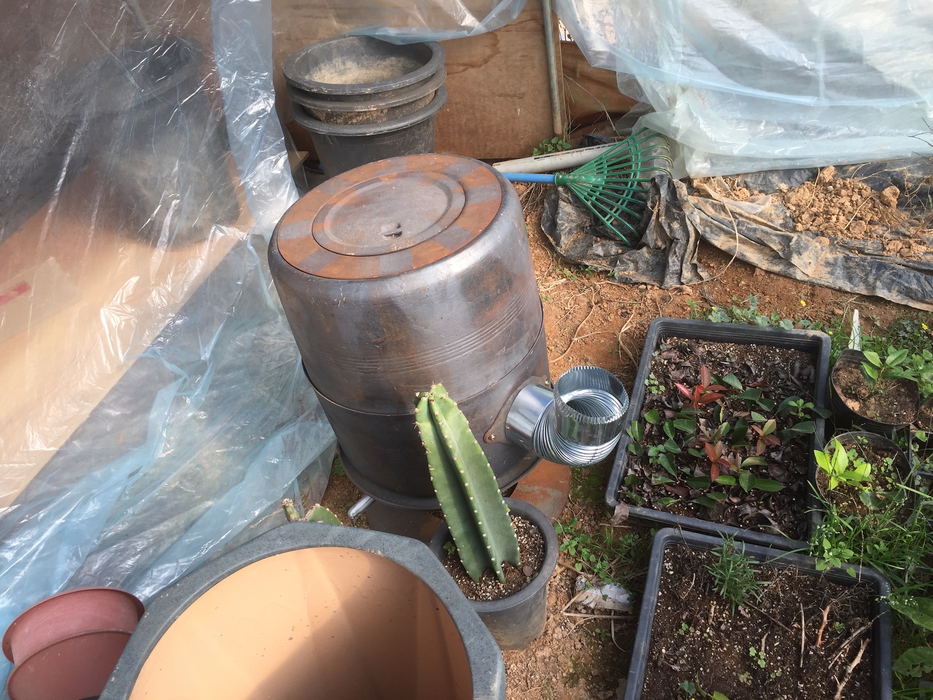 난방할 하우스로 이동시키고 연통연결 작업을 했네요.