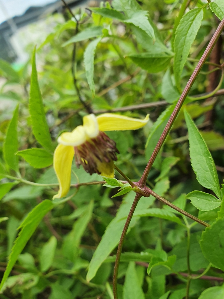 꽃은 8~9월에 피고 지름 5-6cm로서 짧은 화경(花梗)에 몇 개씩 밑을 향해 달리며 꽃받침잎은 4개로서 연한 황색이다. 화피는 긴 타원형이고 약간 뾰족하며 겉에는 털이 없으나 안쪽에는 털이 있고 수술은 많으며 수술대에 털이 있다. 암술대는 길이 5mm내외로서 연한 황색 또는 백색 털이 있다. | |