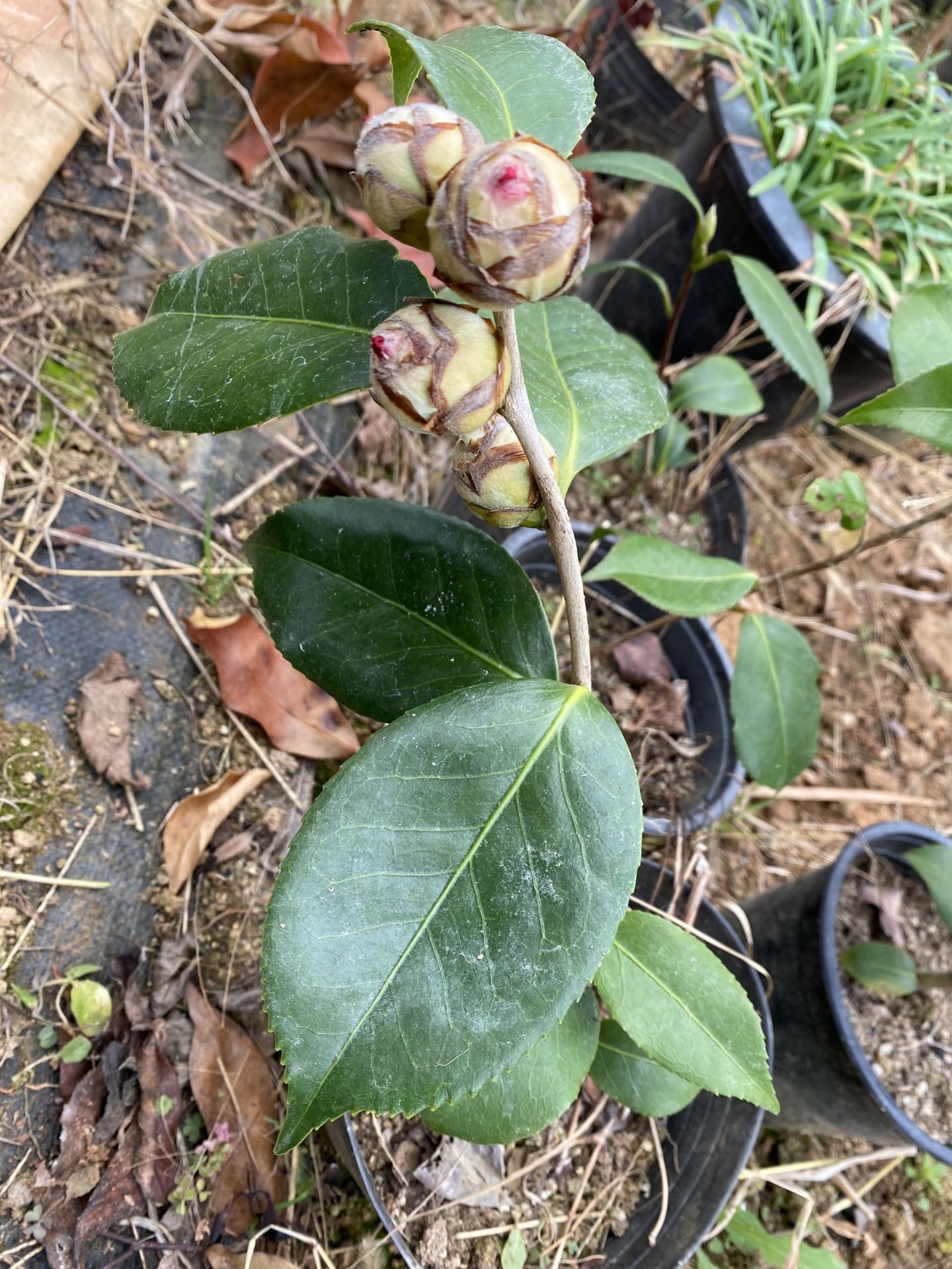 항상 가을쯤에 삽목해서 겨울을 보내서 뿌리를 내리는 동백들인데 삽목 2년차부터 꽃대를 달리더니 아주 조그만한 아이가 꽃을 피웁니다.