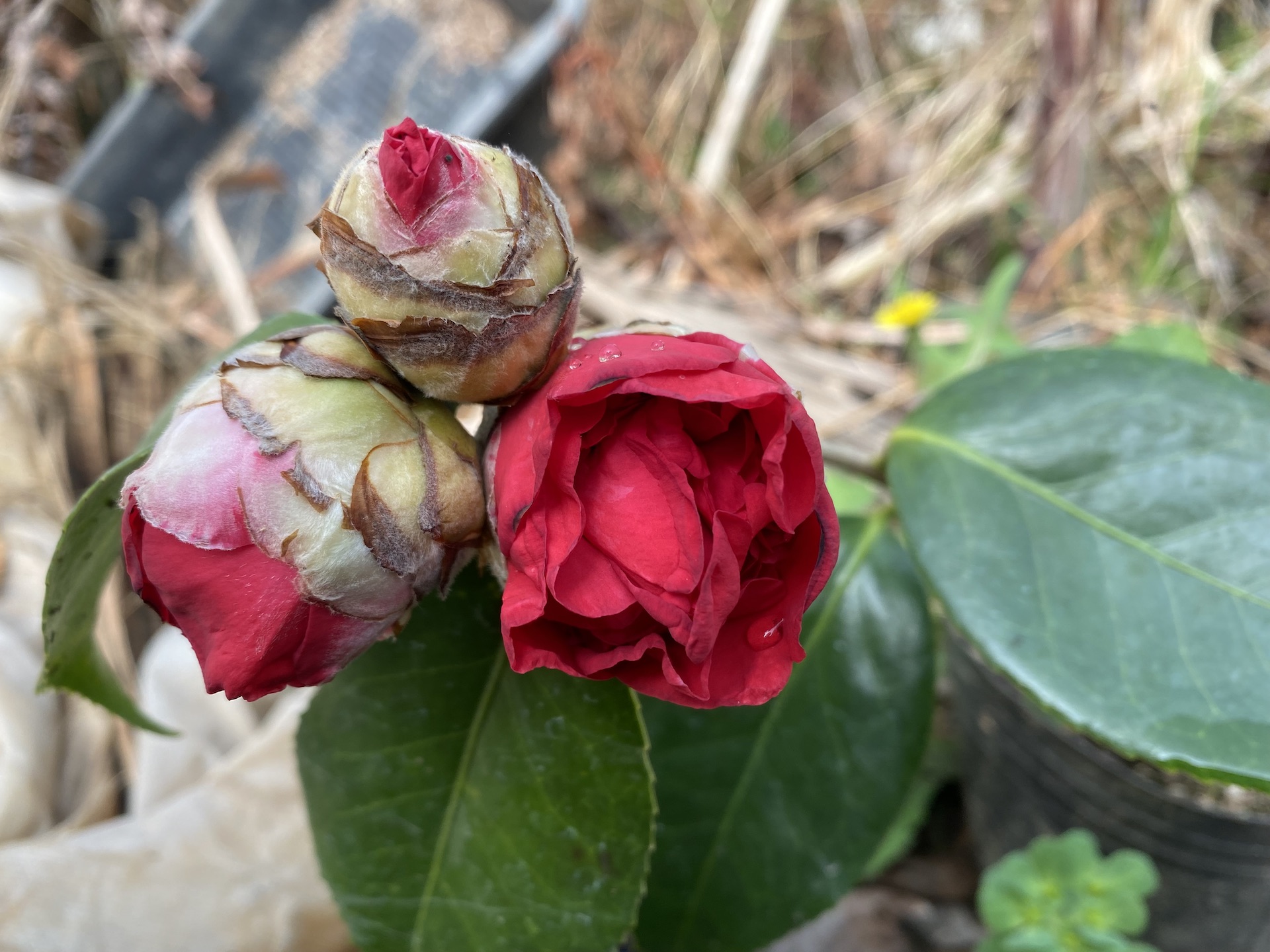 다른 동백은 안그런데 이 품종만 그런건지 모주가 년생이 있어서 그런지 개화가 상당히 빠른 편으로 보입니다.