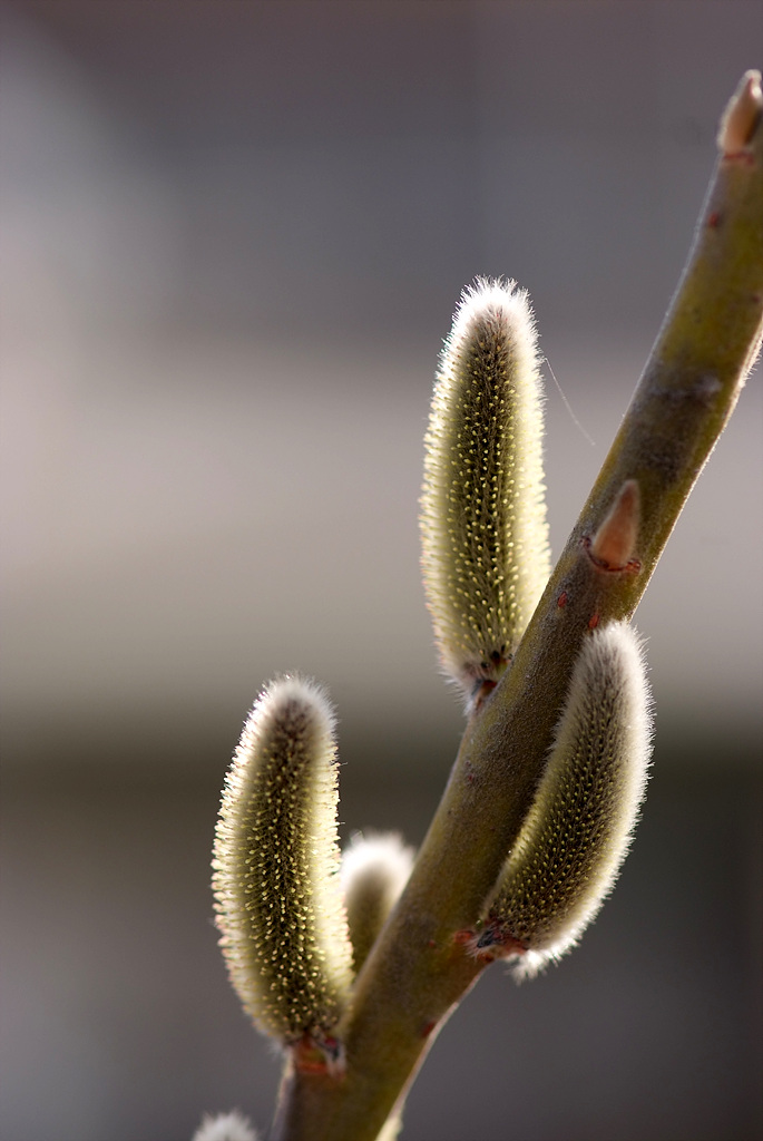 연한 털이 성기게 나고, 묵은 가지는 노란색, 연한 노란색으로 둥글다. 가지는 원줄기와 같이 곧추 자란다. 싹눈은 가늘고 긴 달걀형,