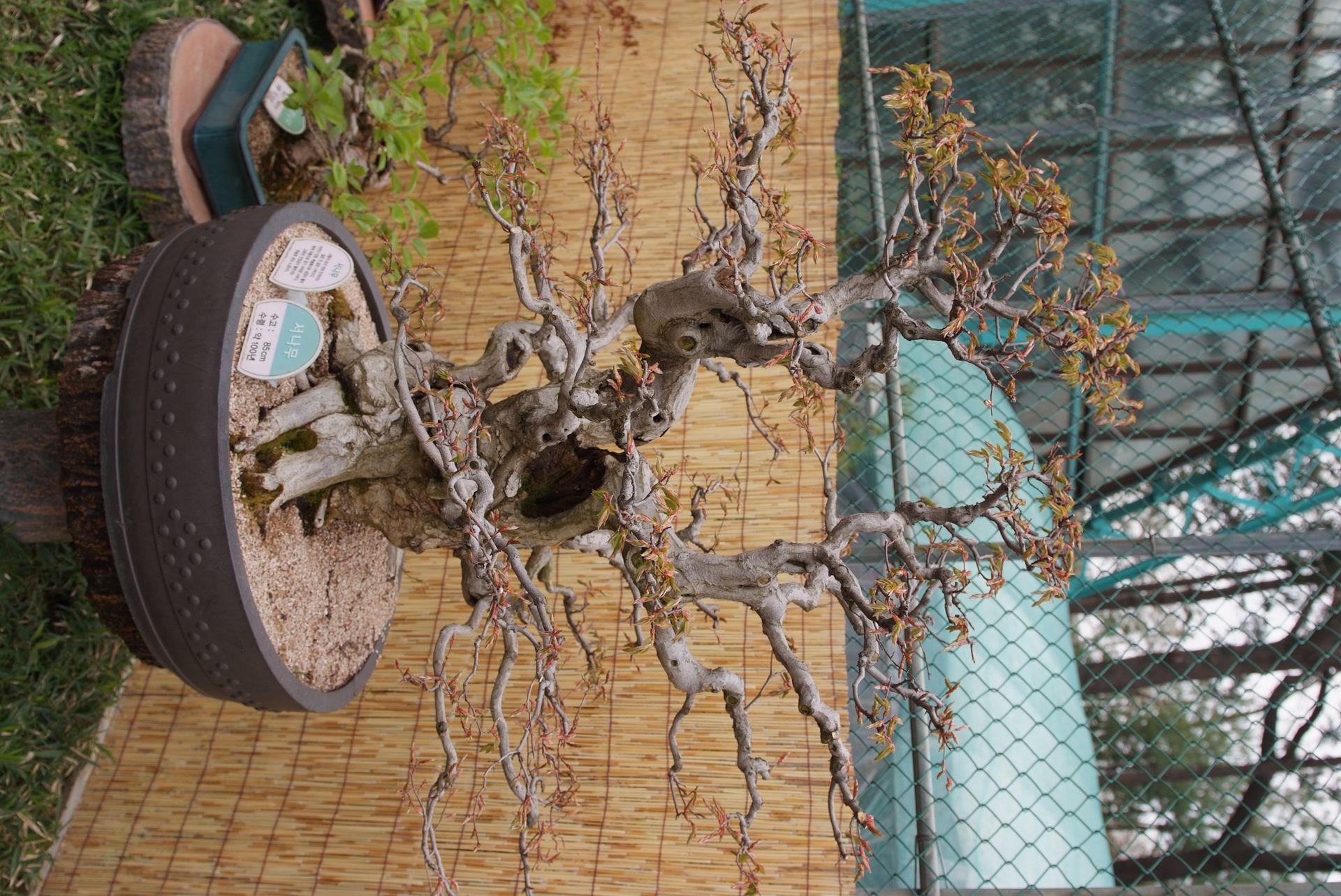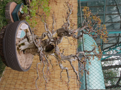 높이 15m, 지름 1m이고 수피는 회색이며 평활하며 근육모양으로 울퉁불퉁하고 소지와 동아에 털이 없다. 줄기는 옆으로 자라며 작은 가지는 홍갈색이다. | |
