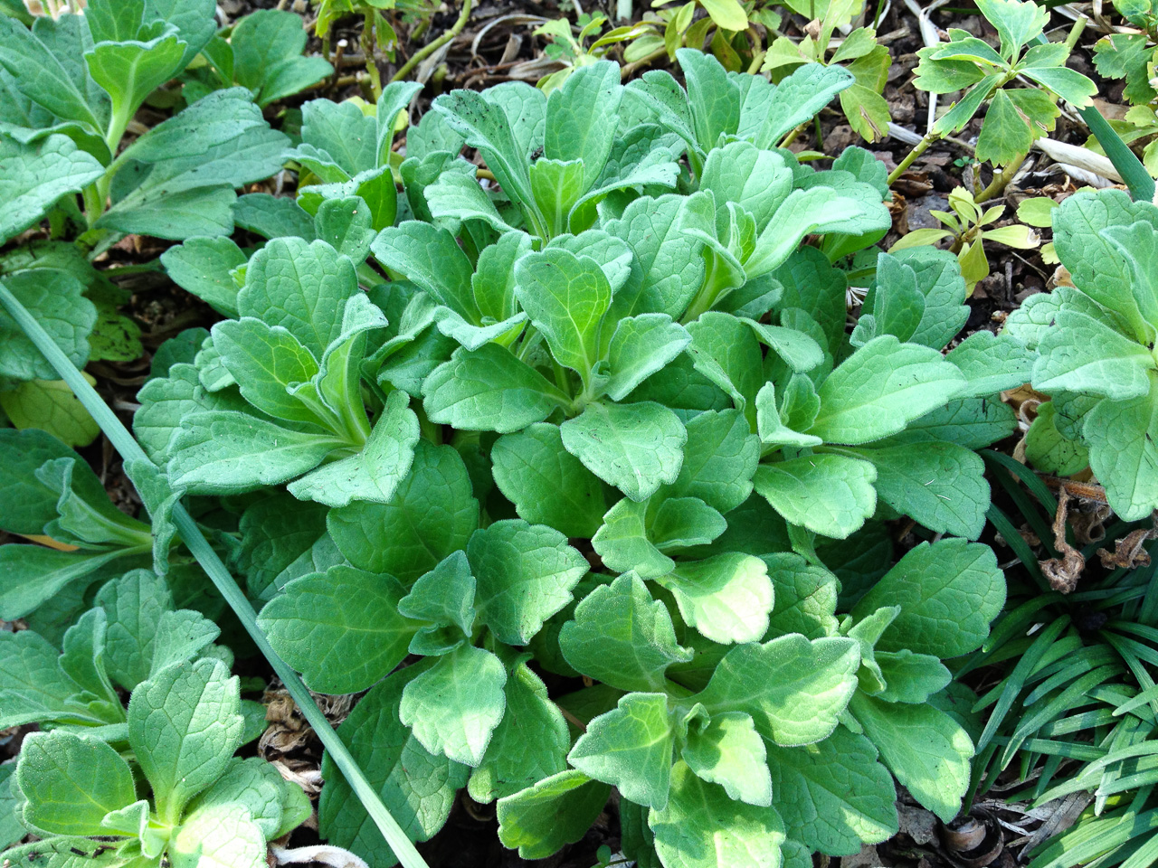양면에 융모가 있으며 가장자리에 톱니가 없거나 몇 개의 큰 톱니가 있고 엽병은 길이 2-3cm이다. 겨울에도 잎이 반상록으로 남아 있다. |