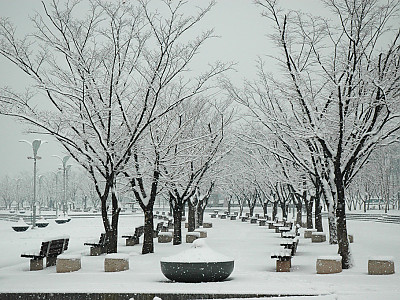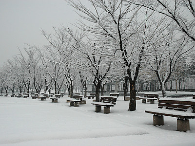 상암월드컵공원 눈내린 벤치