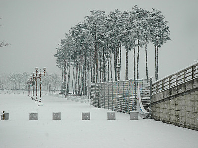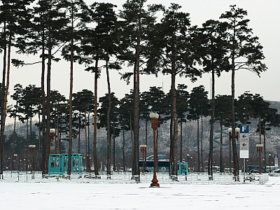 상암동 월드컵경기장 설경 과 소나무