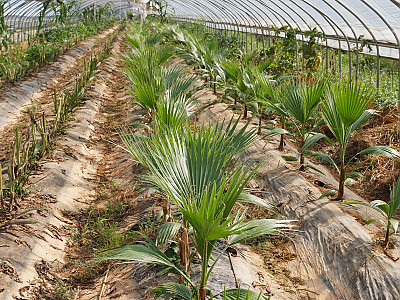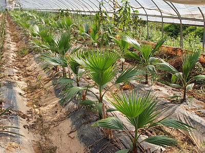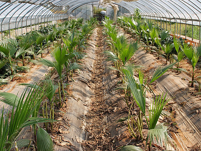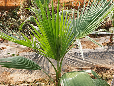 이식한지 얼마되지 않는 야자수