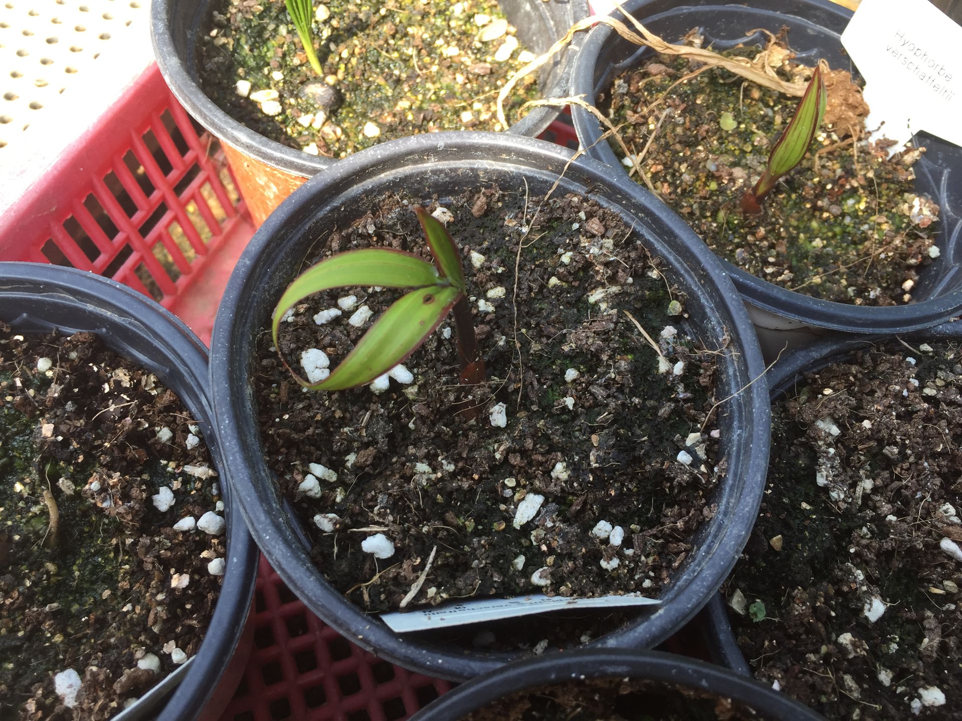 학명에서 알 수 있듯이 주병야자(Hyophorbe lagenicaulis)와 가장 가까운 종(Hyophorbe verschaffeltii)이네요.