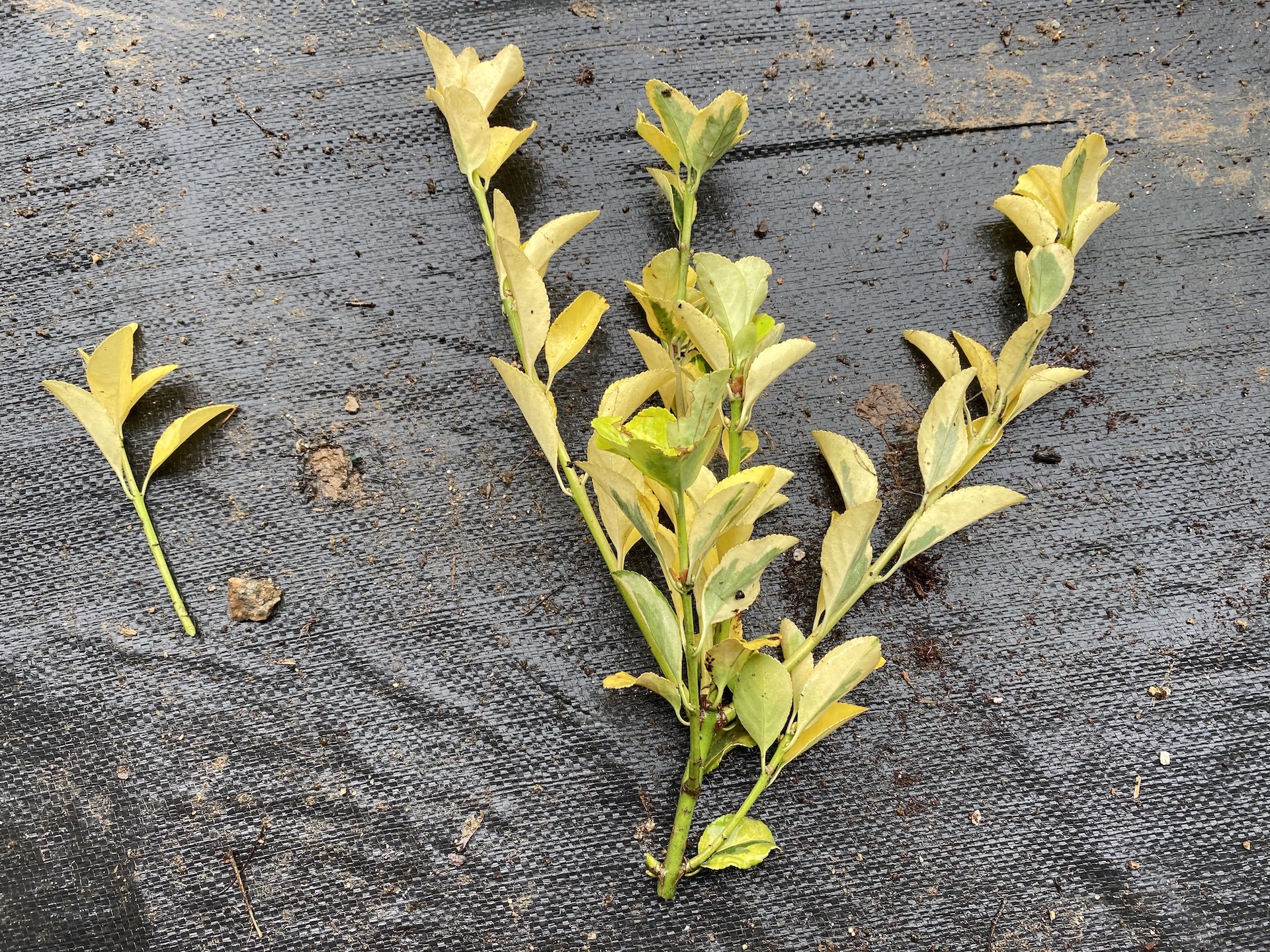 묵은 가지는 삽목시 발근이 잘 안되기 때문에 올해 새가지중에 단단해진 가지들을 삽수로 이용합니다.