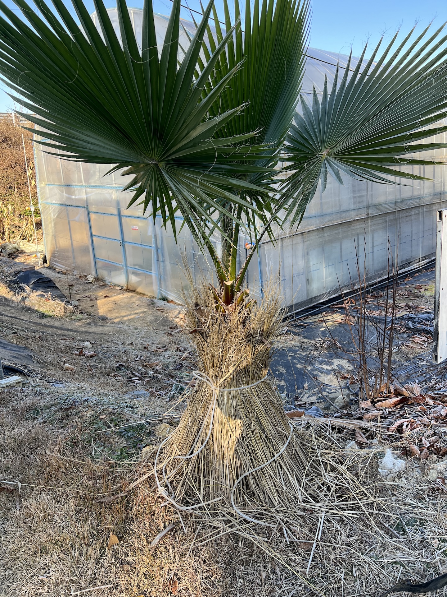 워싱턴야자 2년차 월동처리 작년에 노지에 식재해서 월동시켰던 워싱턴야자!