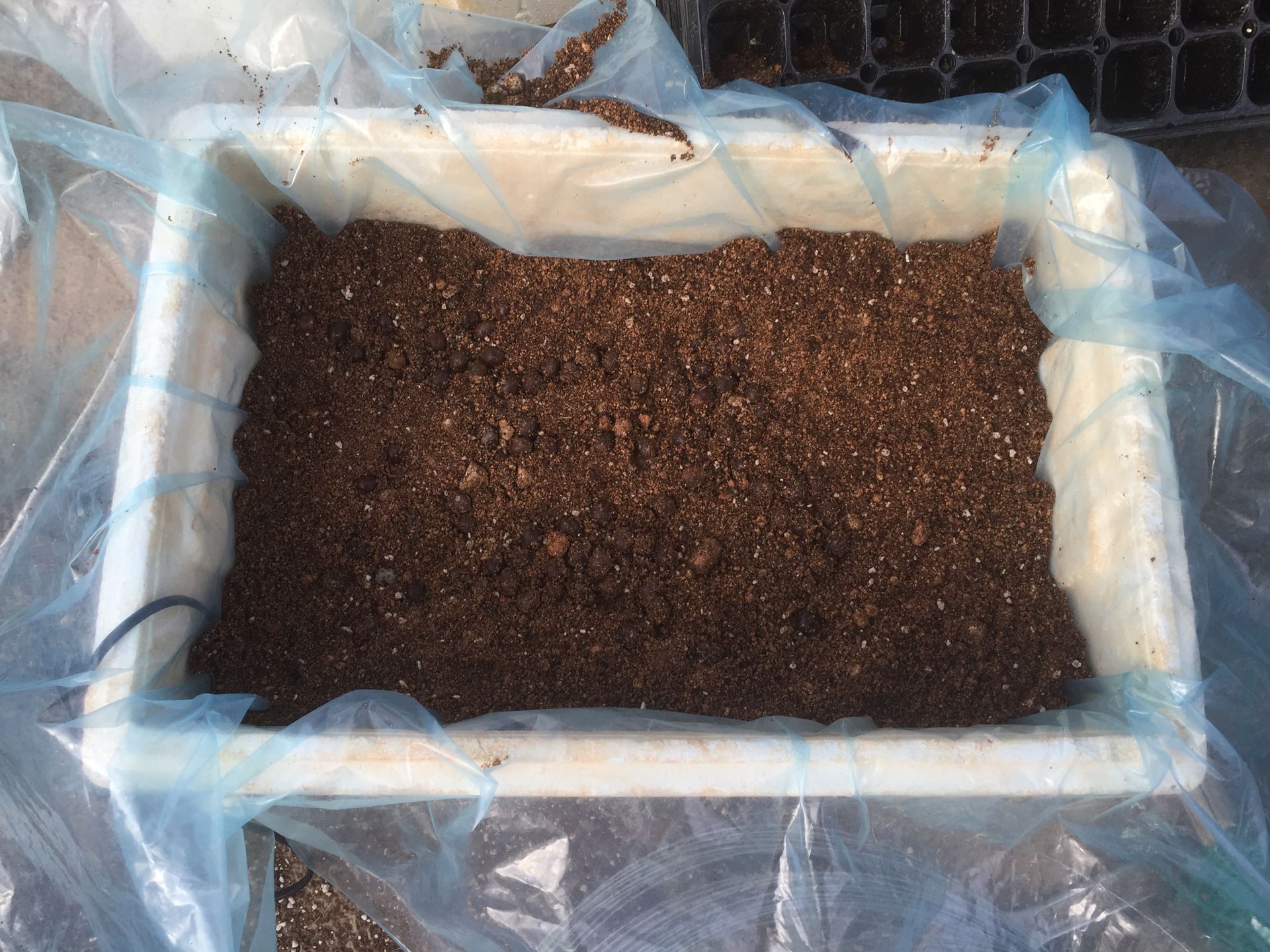 3일동안 따뜻한 물에 불린 주병야자 씨앗을 스치로폴에 발아용 열패드를 깔고 그 위에 비닐을 깔고 다시 상토와 흙을 혼합한 걸 깐 후에 주병야자 씨앗을 나열 한 뒤에 다시 상토 흙을 얕게 덮어 주었다.밤낮으로 온도를 조절해서 발아율과 발아속도를 높일 것이다.