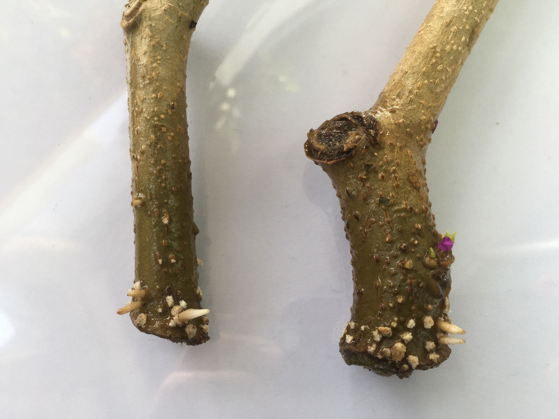 물꽂이를 하다보면 하얀에 군데군데 캘로그가 형성되고 그 부분에서 뿌리가 도출되는걸 볼 수 있다.