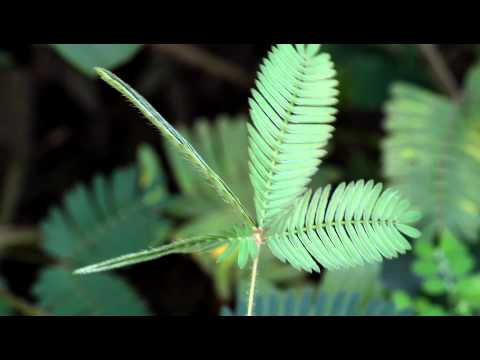 미모사 - Touch-me-not plant/sensitive plant (mimosa pudica) leaves in action