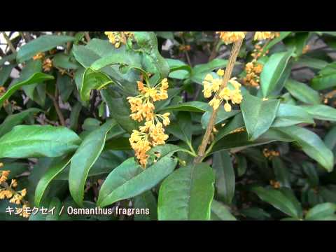 꽃은 이가화이고 지름 5mm정도로서 9-10월에 산형화서로 액생하며 두터운 육질화로 짙은 향기가 있다. 꽃은 등황색이며 길이 7-10mm의 소화경이 있다. 꽃받침은 녹색이며 4개로 갈라지고 화관도 4개로 갈라지며 열편은 타원형 원두이고 2개의 수술과 1개의 암술이 있다. | |