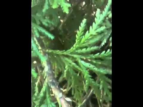 잎은 윤채가 있는 짙은 녹색이며 뒷면에 백색 기공조선이 있고 옆에 달린 것은 비스듬히 퍼지며 좌우로 편평하고 반난형으로 길이 4-6mm이며 앞뒤에 달린것은 앞뒤로 편평하고 넓은 도란형으로 끝이 둔하다. ▶잎은 비늘모양으로 편백나무보다 굵고 크며 잎표면도 거치므로 쉽게 구별이 된다. ▶잎은 대생하며 잎뒷면은 가장자리를 제외한 중앙부는 희다. |