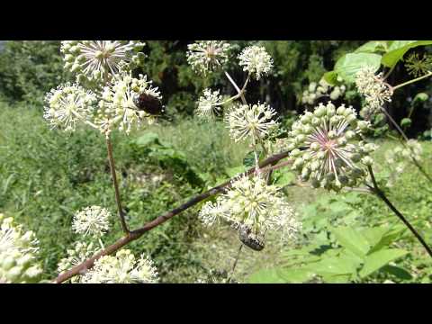 독활 - Gametis Flower Chafers on Japanese Spikenard コアオハナムグリがウドを訪花摂食
