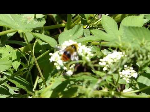 꽃은 7-8월에 피고 백색이며 가지 끝과 원줄기 끝에 산방상으로 달리고 화서분지에는 원줄기의 하반부와 더불어 퍼진 또는 밑을 향한 백색 털이 있다. 화관은 지름 4mm로서 끝이 5개로 갈라지며 통부가 짧다. 4개의 수술과 1개의 암술은 길게 꽃 밖으로 곧게 뻗고 자방은 하위이며 3실로서 그 중 1실만이 열매를 맺는다. | |