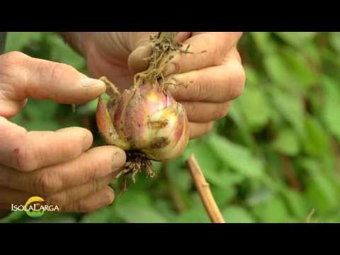 여러해살이풀이다. 비늘줄기는 둥글다. 줄기는 높이 100∼200cm이다. 잎은 어긋나서 촘촘히 붙고, 피침형이다. 잎겨드랑이에 갈색의 둥근 살눈이 달린다. 꽃은 7∼8월에 4∼20개씩 달리며, 조금 밑을 향하고, 노란빛이 조금 도는 붉은색, 지름 10∼15cm, 향기가 없다. 열매는 삭과이다.