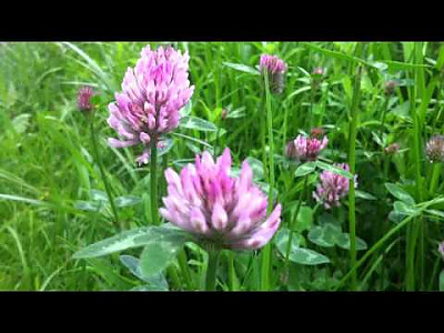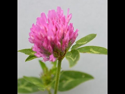 꽃은 6-7월에 피고 줄기 또는 가지끝에 자주빛 또는 붉은 자줏빛 접형화(蝶形花)가 산형으로 밀집되어 두상화서를 이루며 화경이 거의 없이 줄기 꼭대기잎 탁엽으로 싸여 있다. 포는 난상피침형으로 꽃받침보다 짧다. 꽃받침은 종모양으로서 선상피침형의 5치가 있다. 꽃잎은 길이 12-16mm이다. | |