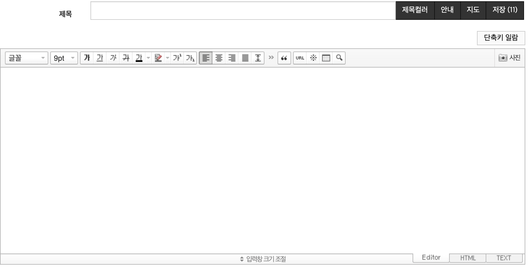 처음 가입시 위지윅에디터 (글자크기, 조절, 이미지추가, 강조, 글자폰트 변경등의 기능을 수행할 수 있는)의 기능을 사용할 수 없도록