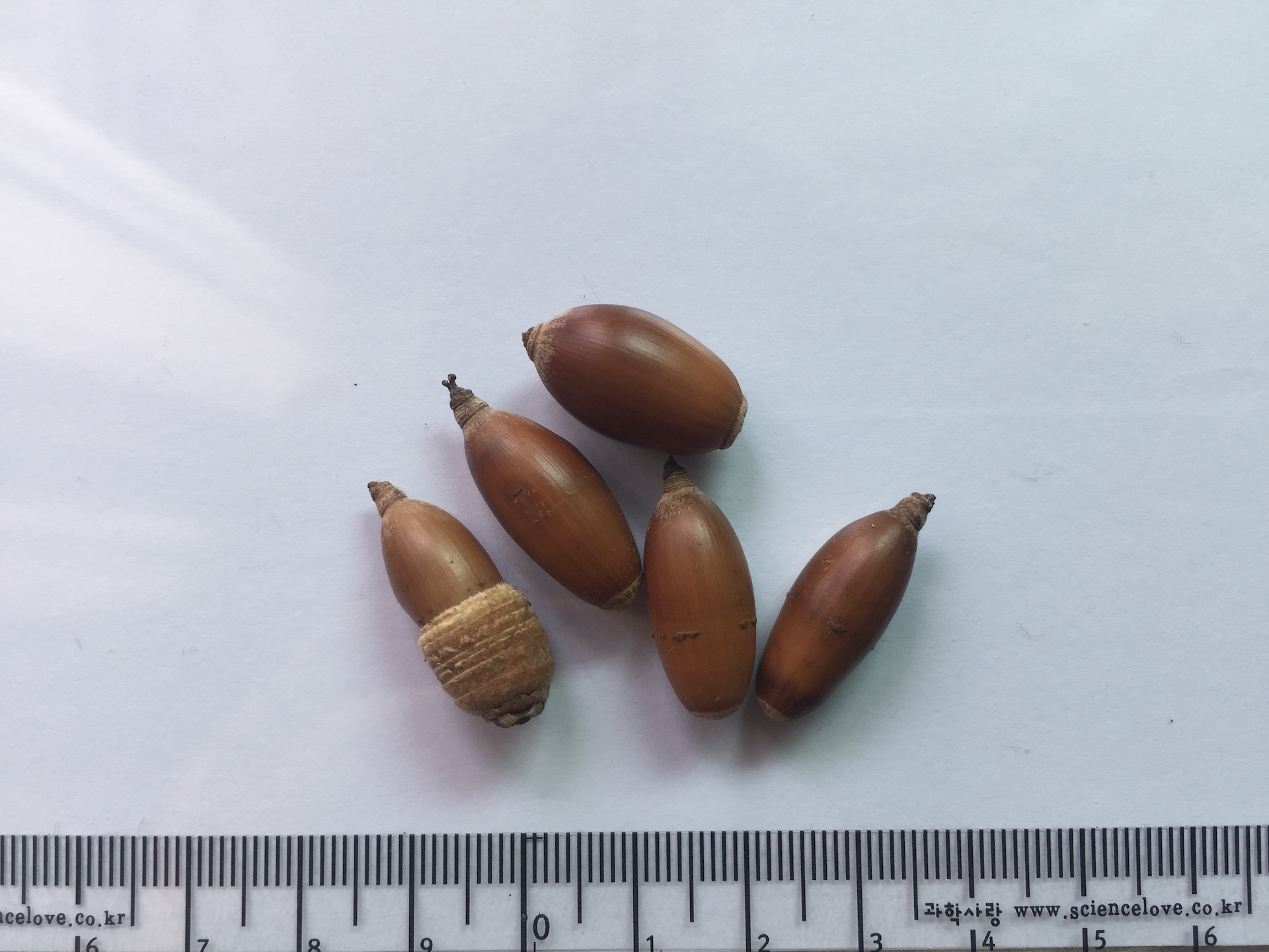 견과는 난형이고 길이 1.5-2㎝로서 대가 없으며 열매는 다음해 10월에 익는다. 열매는 총포로 쌓여 있으며 원추상 난형으로 모밀잣밤나무보다 크고 익으면 3갈래로 벌어진다. | |