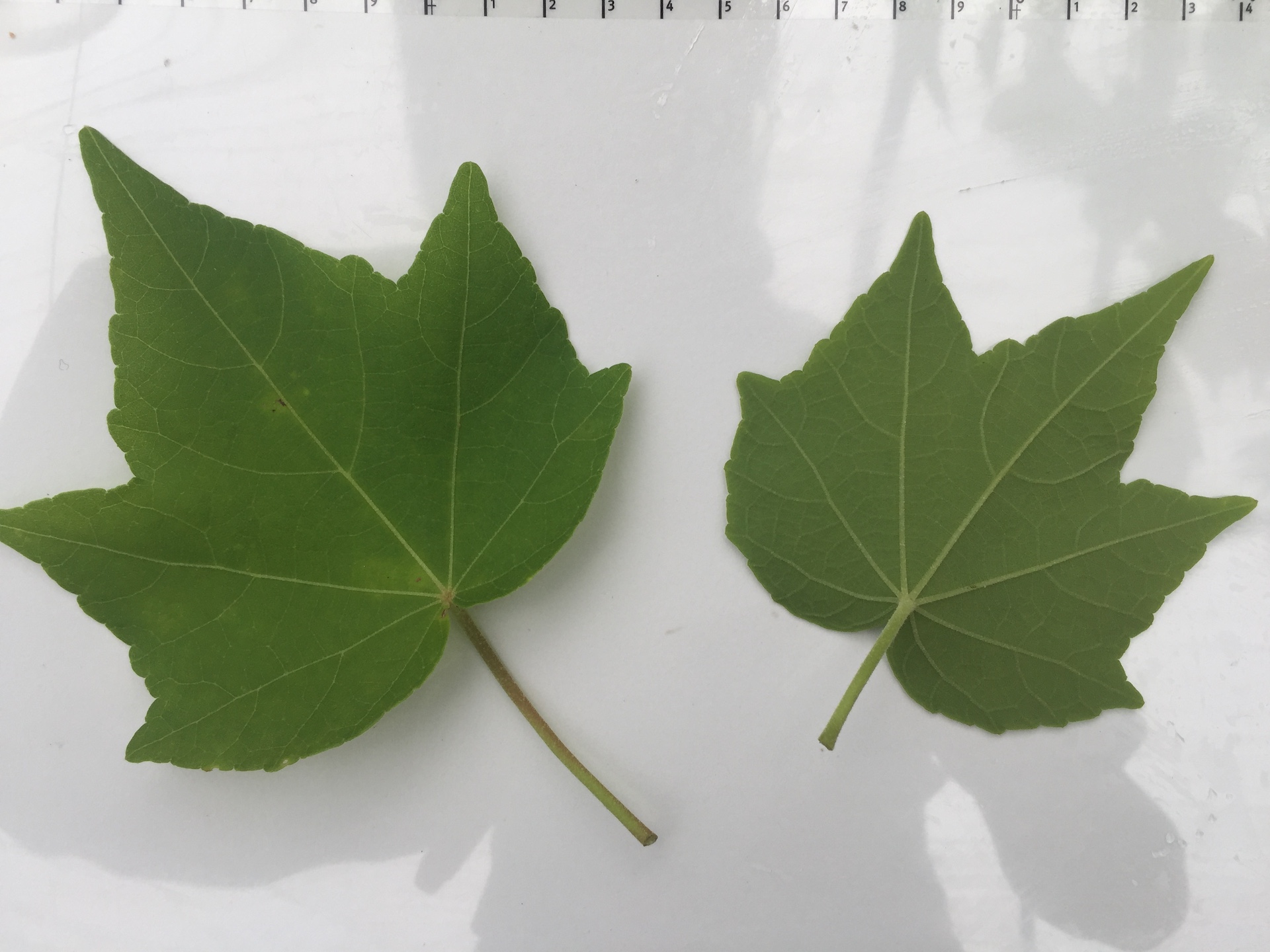 줄기는 높이 1.0~2.5m로 곧게 서고, 별 모양 털이 있거나 거의 털이 없다. 턱잎은 일찍 떨어지고, 잎자루는 4~10cm로 털이 다소 있다. 잎은 난형, 난상 피침형이며, 때때로 2갈래로 갈라지고, 길이 10~18cm, 폭 4~8cm, 끝은 꼬리 모양으로 뾰족하고, 가장자리는 무딘 톱니 모양이며, 밑은 둥근 모양이다. 꽃은 잎겨드랑이에 하나씩 달리고, 작은 꽃자루는 4~8cm, 별 모양 털이 드문드문 난다. 열매는 삭과, 원추상 난형으로 길이 2.5~3.0cm이고, 5심피다.
